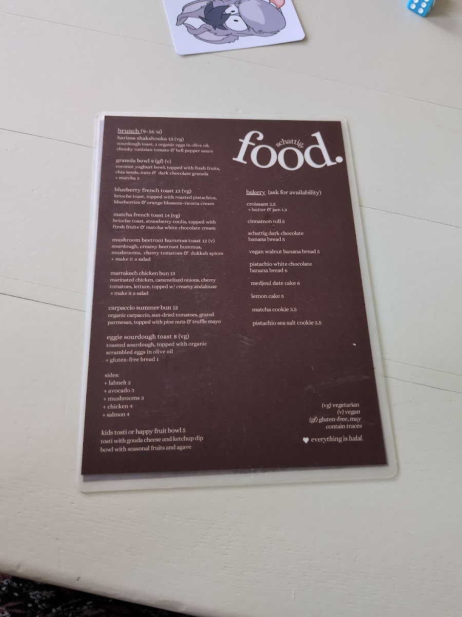 schattig. Menu